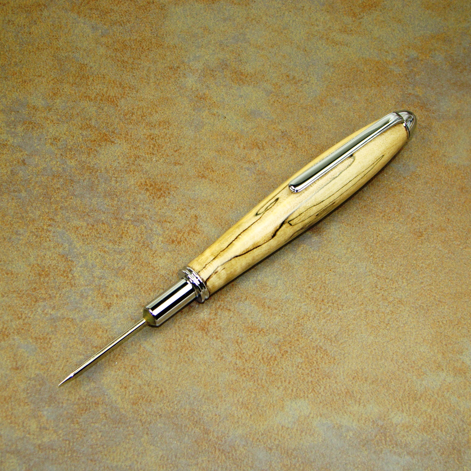 This terrific selection of Spalted Maple looks amazing on this chrome stiletto, a favorite tool of quilters and crafters alike. Blade reverses for safety and storage.
