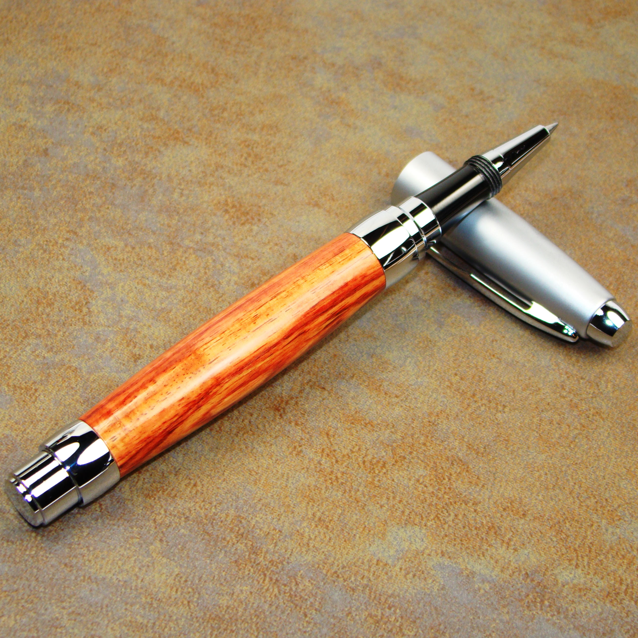 A stunning selection of Tulipwood, native to Brazil, makes quite the statement on this Presimo roller ball pen. The cap screws on to secure, and posts to the other end while writing.