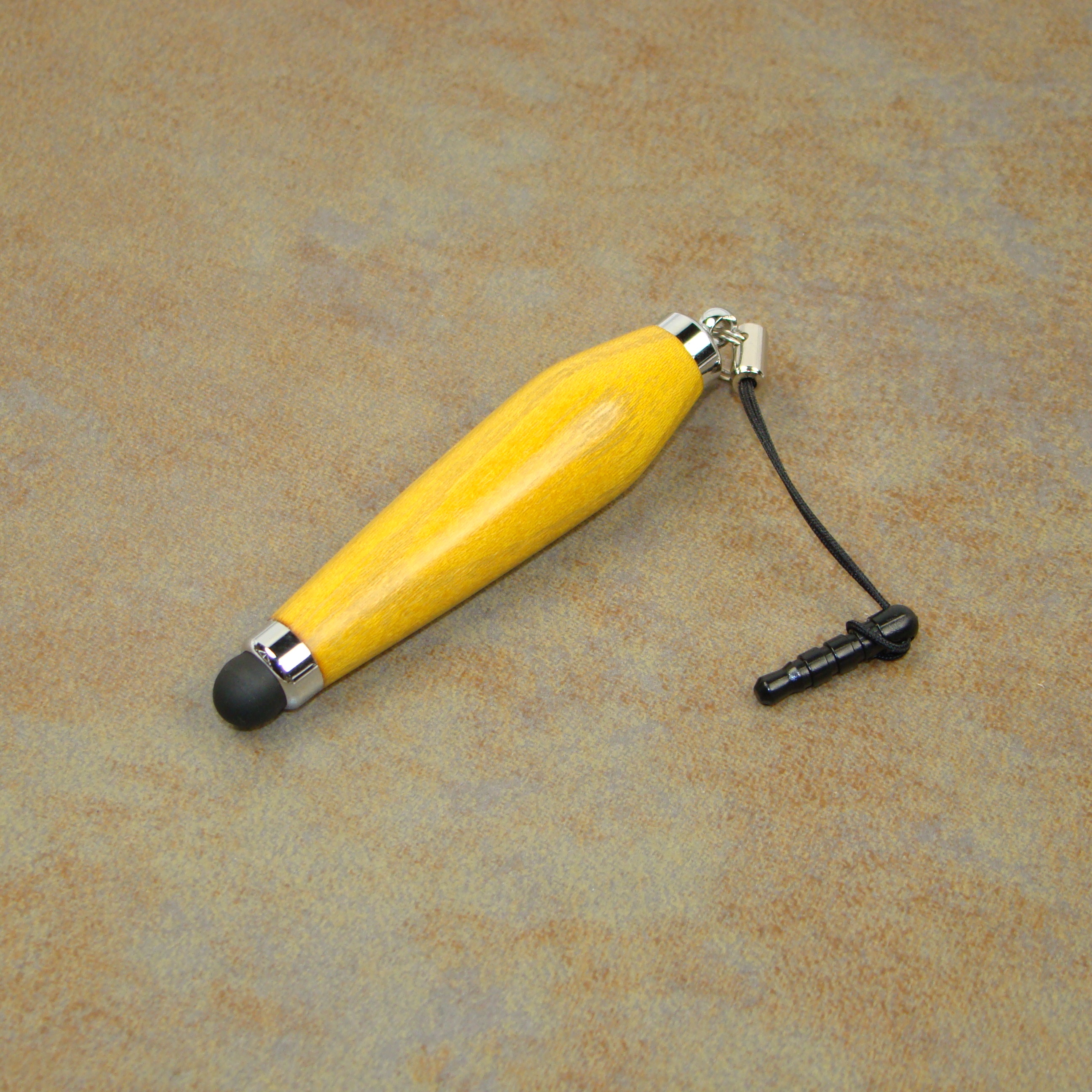 Great accessory for those touch-screen phones and tablets, this stylus is decked out in chrome hardware and Osage Orange wood. Features a headphone lanyard plug for quick temporary storage. Approximately 2.5" long.